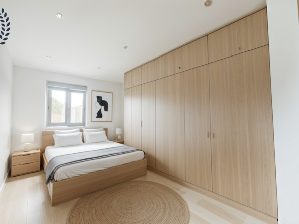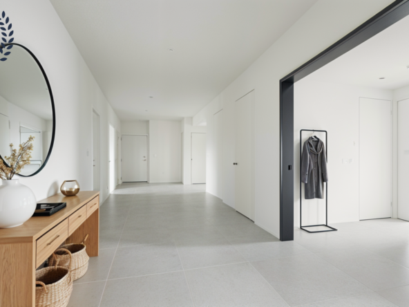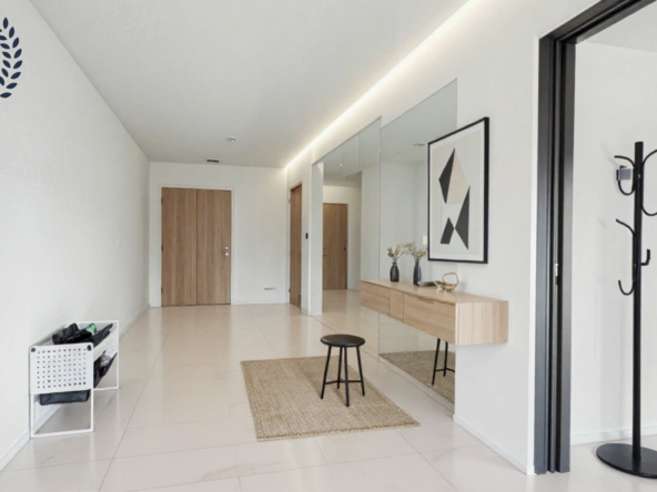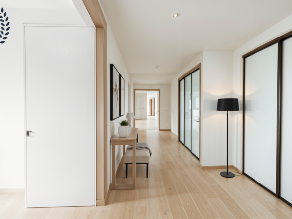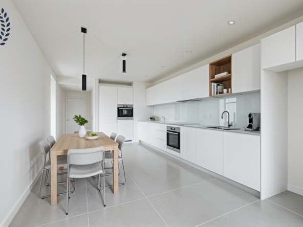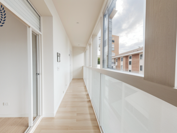 Con 116 m² construidos y 104 m² útiles, la vivienda se distribuye en tres dormitorios, dos baños, cocina independiente y un amplio salón comedor. Destacan sus dos espacios exteriores: una terraza orientada al sureste, con acceso desde la cocina y luz natural durante la mañana, y un balcón conectado al salón con orientación noroeste, que recibe la cálida luz de la tarde. La doble orientación favorece la luminosidad y la ventilación cruzada.